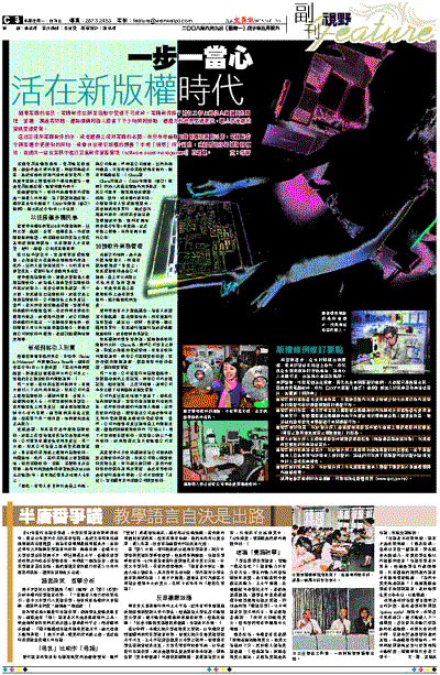 Gloria亦提及,《2007年版權(修訂)條例》亦加入其他出版物的刑事條款。如果公司經常、頻密地發放書籍、報紙、期刊、報章等的複印件,令版權持有人蒙受經濟損失,將會構成刑事罪行。關於參考用途的複印,政府將會設定複製限額或印數。預料有關法例會在今年第4季實施,至於印數上限等,尚待有關方面的公布。