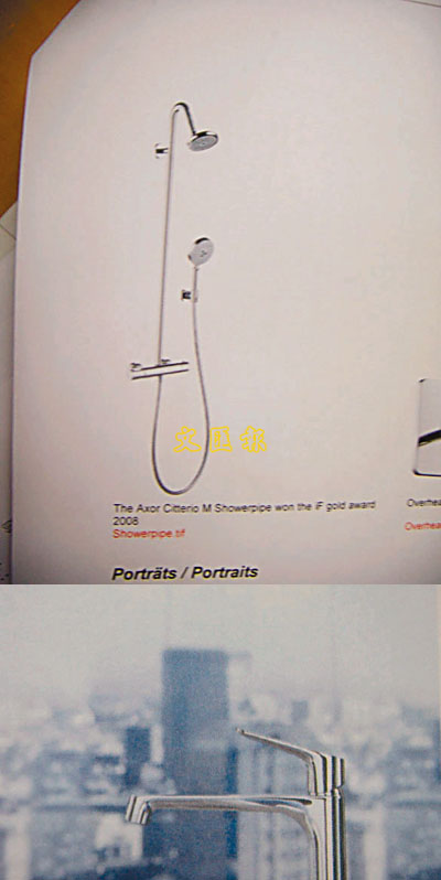 ■(上)榮獲2008年度iF設計金獎的Axor Citterio M花灑頭。(下)Citterio結合科技和設計,襯托水的珍貴,令人在使用時更懂得珍惜。