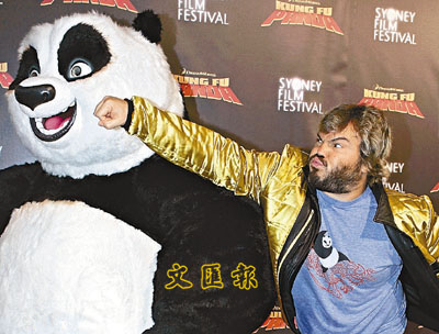 已於美國獻映的夢工廠全新動畫《功夫熊貓》,昨日一眾台前幕後來到南半球的澳洲舉行首映禮,全場焦點固然是外形跟偌大熊貓同樣惹笑的積伯克(上圖)。看他突然來個超人拳轟向熊貓臉龐,彷彿就是同類在互相打鬥哩!另外身為《奪寶奇兵4》女主角的姬蒂白蘭芝,也拖著老公和小孩前來捧場(左圖),始終這兒是她祖家,怎樣都要給點面子。講開本片,它以6千萬美元(約4.68億港元)順利成為今周北美票房冠軍。 ■文:藝能小子 圖:美聯社