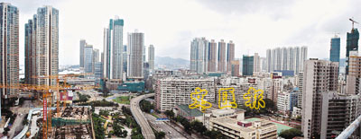 【本報訊】(實習記者 鄧啟麟)大角咀將興建多棟高達50層的住宅大廈,令西九龍區的屏風效應可能加劇。綠色團體「環保觸覺」說,擁有6座、45至55層高大廈的海庭道項目將成為區內最高的屏風式屋苑,竣工後大角咀將會被14個屋苑、共68座屏風樓包圍,造成嚴重的屏風效益,並批評有關的海庭道建屋計劃的審批過程,反映城規制度漏洞重重,無力監管發展商。