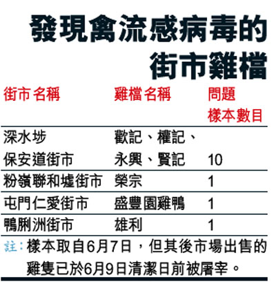 註:樣本取自6月7日,但其後市場出售的雞隻已於6月9日清潔日前被屠宰。