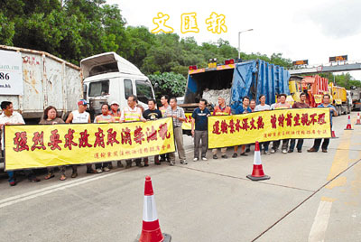 【本報訊】繼前日有司機在繁忙時間堵塞中環主要道路,令中環一帶交通嚴重受阻,運輸業界昨日繼續在將軍澳堆填區和中環禮賓府罷駛和靜坐,要求政府取消柴油稅。其後一批司機與到灣仔運輸署與政府官員會面表達訴求。運輸業關注燃油價格聯席會議發言人蔣志偉稱,給予當局一個星期時間考慮,如果沒有正面回應,不排除將行動升級。