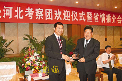 河北省委常委、統戰部長劉永瑞,受省委書記張雲川、代省長胡春華委託,會見考察團全體成員時說,河北處於環渤海核心區域,環渤海經濟圈的迅速崛起,給河北帶來了得天獨厚的惠澤,東莞市外商投資企業協會中有許多有實力、有影響的企業家,希望大家在河北多走走多看看,加強交流合作,實現互利共贏。
