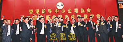 ■香港新界中小企業協會新一屆會董和榮譽會董等舉杯,共賀香港經濟更蓬勃,中小企前景更興旺。