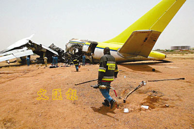 蘇丹航空公司一架A310型空中巴士前晚失事,降落首都喀土穆時滑出跑道,一個引擎發生爆炸,機身迅速被烈焰吞噬,斷成兩截,至少29人活活燒死,逾170名乘客及時逃出生天,尚有14人失蹤。意外起因未能確定,懷疑是天氣惡劣或技術故障引起。