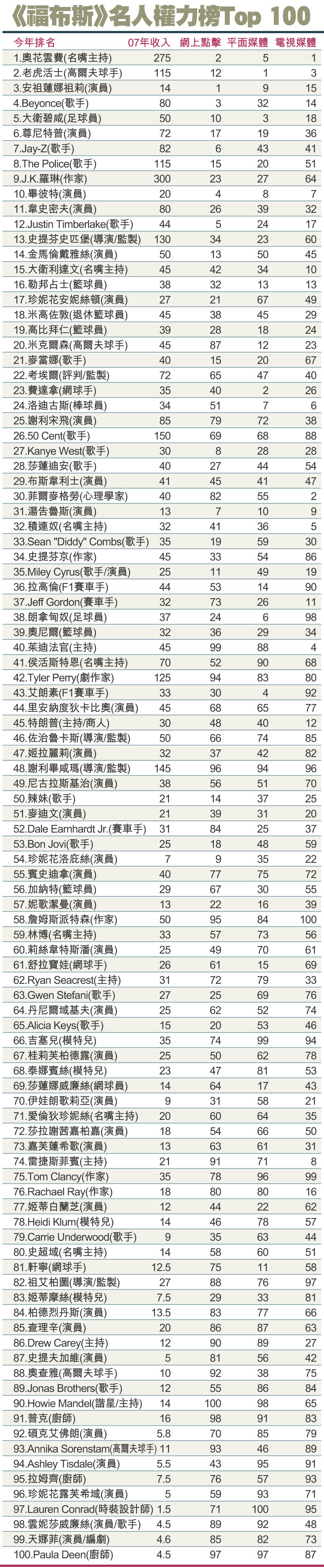¡mºÖ¥¬´µ¡n¦W¤HÅv¤Oº]Top 100 (¹Ï)