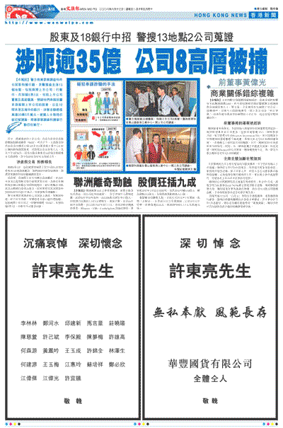 ¡@¨ä¤¤¤@¶¡³Q·j¬dªº¤W¥«¤½¥q¡A¬°ªñ¦~´¿¦h¦¸§ó´«®Ö¼Æ®vªºÁp¬w°ê»Ú¡]0048¡^¡C¬Q¤é¤U¤È¡A¤j§å±´û¨ì¨ä¦ì©óªø¨FÆW«C¤s¹D489¦Ü491¸¹»´ä¤u·~¤¤¤ßC®y11¼ÓªºÁp¬w°ê»Ú·j¬d¡A¨ä¶¡±a¨«¦h¦W¯A®×¤H¤h¡A¤Î¦Ü¤U¤È5®É30¤À¡A±´û¥X°Ê¤â±À¨®¤Î10¦hÓ¤j½¦½c¹B¨«¤j§åÃÒª«¡A·í¤¤¥]¬A¯A¤Îªñ¦~¥æ©öªº¤å¥ó¡C