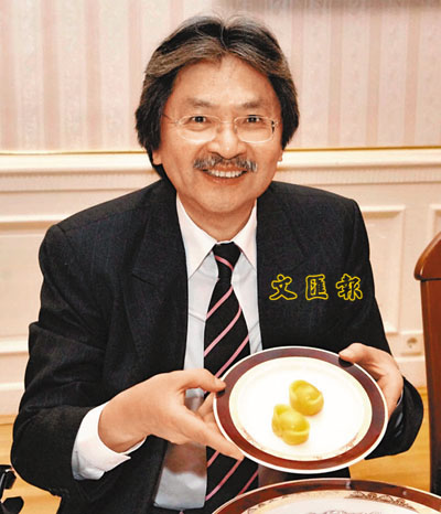 ■財爺在網誌展示中國駐奧地利大使吳懇送上的甜品「金元寶」,寓意特區經濟發展蓬勃。