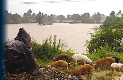 ■昨日下午,廣東惠州經受特大暴雨,三棟鎮官橋村羅女士的養豬場成為一片汪洋。 中新社