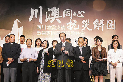 是次的籌款晚會共設160多席齋宴,港澳政商界人士、演藝界、教育界、宗教界等各界人士約2000多人出席。何鴻燊在晚會上表示,施比受有福,希望各界人士放下悲痛,持續支持災後龐大和漫長的重建工作。其後,何鴻燊以漁人碼頭的名義向中華慈善總會捐出1500萬。在晚會後,大會初步統計善款達6千多萬元,而籌得的善款將全數捐給中華慈善總會作災後重建。