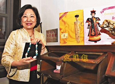 今次的「典當物」包括名貴飾物、名酒、化妝品共18件,所有均放在一個古色古香的木櫃裡。龍傳基金董事之一李麗娟亦鼎力支持,一向鍾情和田白玉的她,更將兩年前買入、由世界傑出華人設計師羅啟妍設計的一條和田白玉頸鏈「典當」出來,相當珍貴,贖回底價為4萬元。