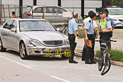 現場為達運道近半山洲村支路,昨午約4時,楊又踏單車載馮童外出,準備載他到火車站與其母親見面,沿半山洲村支路落斜駛往達運路,當時有一輛平治房車由39歲姓洪男子駕駛,沿達運路往碗K行駛。