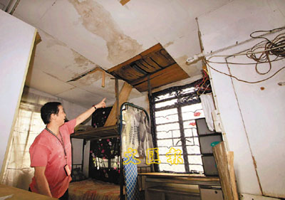 ■居住在上海街唐樓多年的鄭女士稱,屋內居住環境並不太理想,天花板更因日前下雨塌下。