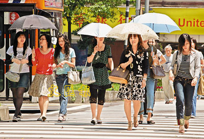 ■用雨傘來遮擋陽光是大部分人的做法,但陳天欣指出這不能阻擋地面反射的紫外光。 資料圖片
