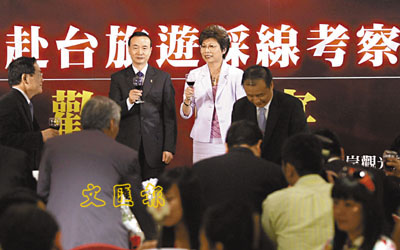 大陸旅遊業者今天抵台進行為期11天的考察「踩線活動」,大陸踩線團16日下午抵達桃園機場,參觀台北故宮及101之後,晚間接受觀光局局長賴瑟珍以台旅會名義在晶華飯店的晚宴招待。台灣海峽兩岸觀光旅遊協會的代表在晚宴上介紹了台灣旅遊界為迎接大陸遊客來台灣所做的各種前期準備。台灣現有163家具接待大陸遊客資格的旅行社,他們申請設立的時間均在5年以上。