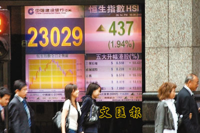 ——中移動匯豐支撐 大市重上二萬三