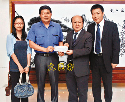 董事長楊奮彬代表錦華礦產貿易有限公司捐50萬元,由協調部周志榮副部長接收。