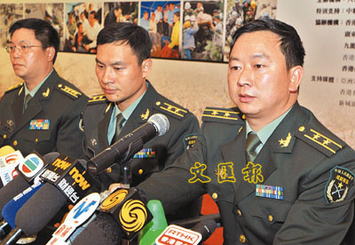 ■(左至右)黃國林大校、楊磊中校、鍾良軍政委分享抗震救災經歷。