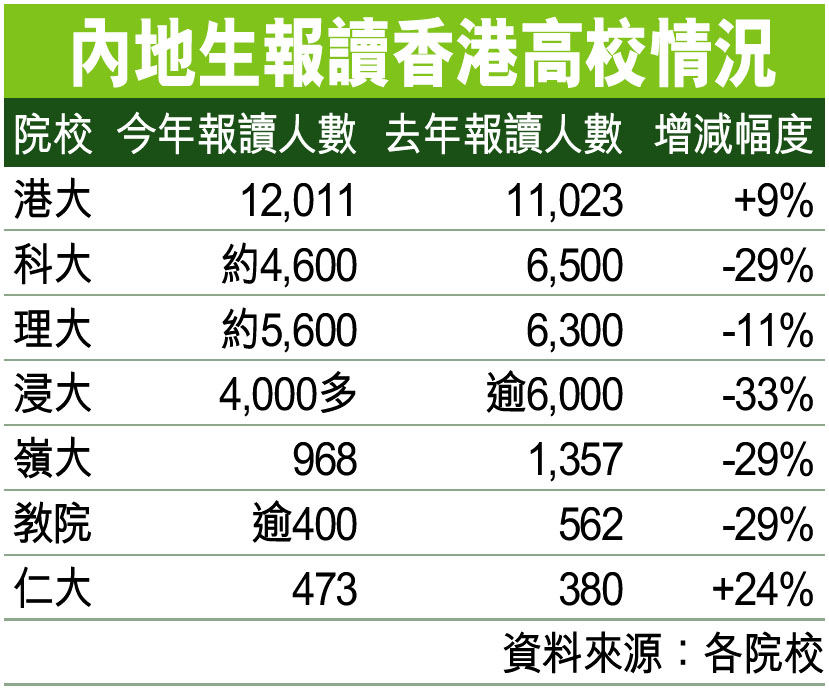 內地生報讀香港高校情況