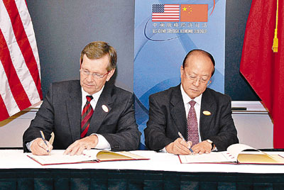 ■李威特(左)與李長江(右)簽署食品和飼料安全合作備忘錄。路透社