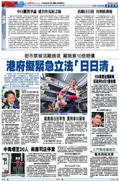 【本報訊】(記者 李見安)本港活雞供應還有13日「解禁」,為免夜長夢多,港府擬緊急立法,鐵腕迫令街市不留活雞過夜。活家禽零售業界強烈反對,揚言9成雞販會因此結業,要求當局給予每檔10倍賠償讓他們「離場」,否則會到禮賓府抗議。而如果業界不再出售活雞,但港府最快在2011年才可實施中央屠宰計劃,此段期間,相信本港市民只能吃冰鮮雞。