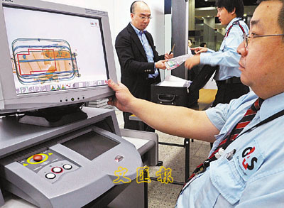 ■本周六起,直通車旅客在登車前,其行李均需要通過X光機檢測。 本報記者李志樑 攝