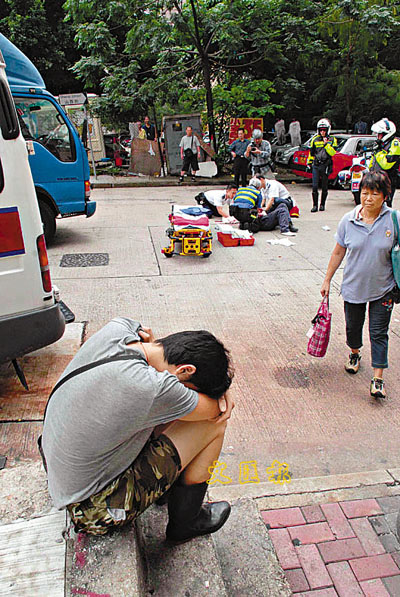 ■肇事貨車司機一度坐在地上飲泣。