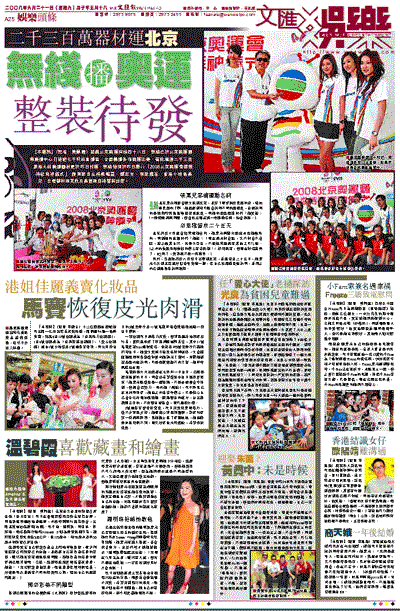 張嘉兒表示稍後會跟大隊到北京,並買了很多關於奧運的書,增加對奧運的了解。她透露到時可能會訪問不同的運動員,最想訪問的是劉翔和郭晶晶等國家隊隊員,問她的國語程度如何?她笑說:「一般應對都無問題,但會找老師惡補一些運動名詞,怕會講錯。」