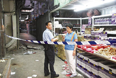 【本報訊】「樓下蓿蘌礎~先塌髐痐硌薯n彩無壓中人,估唔到昨日又塌……」居住新都城大廈一名街坊表示,去年因為商場塌過石屎塊,所以曾經維修過,而上次塌石屎塊位置事後需要整塊拆去,並順道以英泥進行修補維修,估不到昨日上面那塊都跌下來,令大廈結構響起警號。