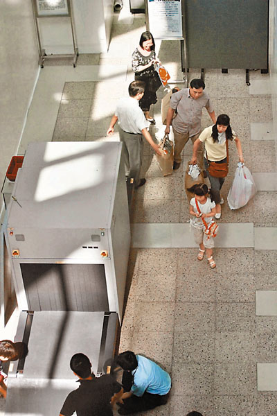 為配合內地各主要車站於5月實施的安檢新措施,港鐵昨起在直通車總站安排安全檢查,所有前往北京、上海及廣州的乘客,需於直通車離境大堂的特設區域,接受X光機行李檢查。港鐵特別斥資約45萬元引入1部電腦掃描器,每件行李檢查需時大約6至10秒。若乘客的手提行李內發現危險物品或違禁品,一律不能入閘。