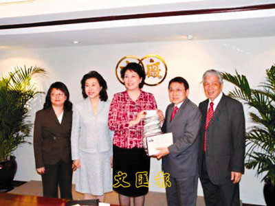 ■廠商會會長尹德勝接受九江市市長王萍(中)致送紀念品。