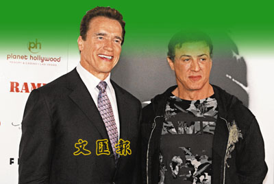 ■阿諾舒華辛力加(左)與史泰龍(右),終於在印度片商撮合下走在一起。資料圖片