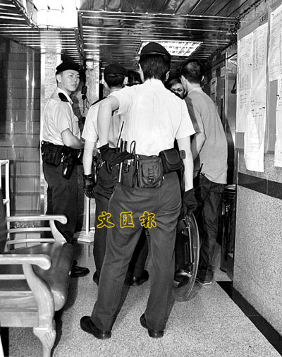 ■警員帶備防暴盾牌登樓戒備。本報記者溫瑞麟 攝
