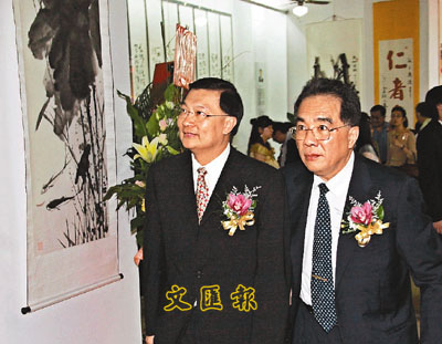 譚耀宗與周安達源欣賞將軍書畫