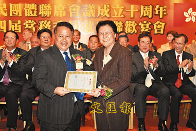 ■黃容根頒發名譽會長證書予范徐麗泰。