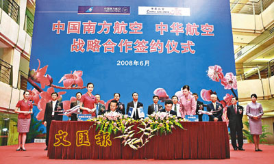 【本報珠三角新聞中心記者唐苗苗、通訊員邵富強廣州23日電】兩岸最大的航空公司——南方航空公司與中華航空公司今日在穗簽署戰略合作備忘錄,展開深層次合作。兩家航空公司稱,目前兩岸包機仍須經香港,耗費大量時間及燃油成本,有消息人士透露,兩岸有望於今年10月實現不經香港的真正「直飛」。