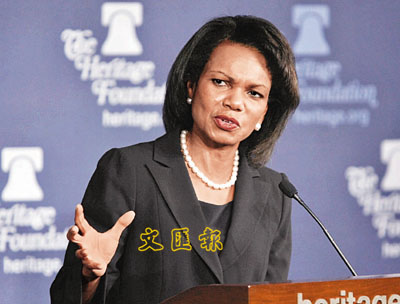 ■美國國務卿賴斯表示反對兩岸挑釁行為。 美聯社