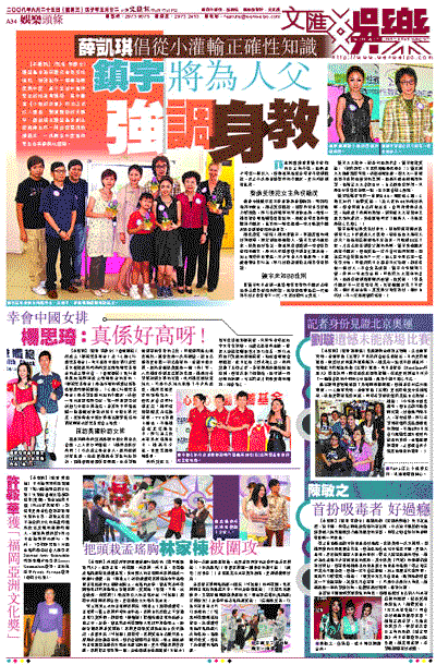 【本報訊】(記者 李慶全)護苗基金為保護兒童免受性侵犯,特別製作一套專為輕度與中度、高小至初中智障學生的性教育課程,其中動畫《小敏的故事》昨日正式投入服務,聲演義助的吳鎮宇、薛凱琪及護苗基金副主席施南生昨一同出席電視啟播儀式,一班輕至中度智障學生也有參與玩遊戲。