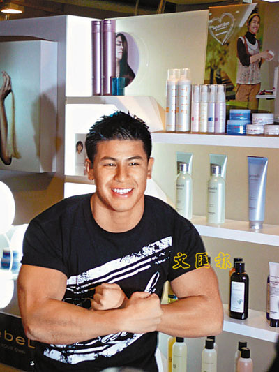 【本報訊】(實習記者 李嘉儀)昨日十二名《2008香港先生競選》入圍候選港男在安排下以六人為一組,分為盛年組及少年組於不同時段到達銅鑼灣一家髮型屋打算一改髮型。一身黑衣的候選人「筋肉人」阿Bill(見圖)更多次以不同姿態展示其結實的手臂肌肉,而另一名招姓候選人依舊穿著Deep V上衣示人,候選人溫先生則透露他是來自紐約的海外參賽者。為保持一眾港男的神秘感,昨日活動上,一眾候選港男只讓傳媒拍照,但對記者提問就封口不回答。今日,他們會公開會見傳媒。