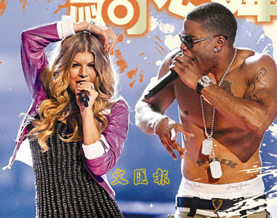 ■Fergie(左)和Nelly(右)的舞姿十分搞笑。路透社