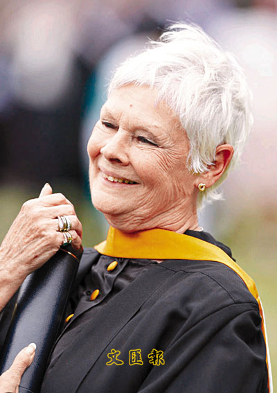 英國實力派演員Judi Dench一直都是電影界最受尊敬的女演員之一,原因除了是她一貫的努力投入演出外,其積極好學的態度也令人尊敬。雖然Judi已年過70,但幾年前她再報讀英國一所大學進修,昨日她終於學成歸來,得到榮譽博士學位。Judi手持畢業證書,感動得眼泛淚光。