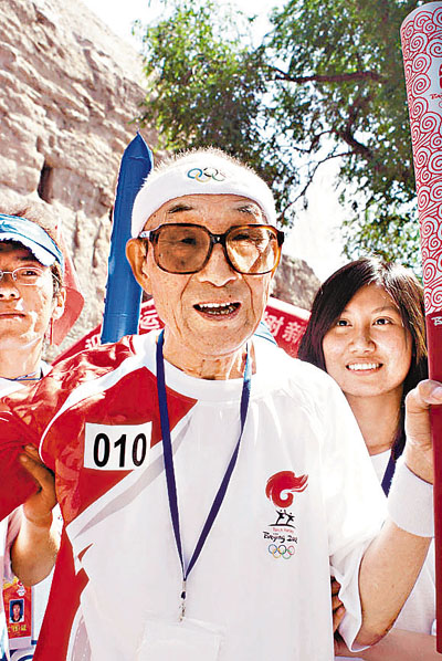 ■山西最年長的火炬手,今年91歲高齡的李智老人。 本報記者羅社管 攝