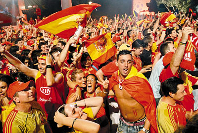 ■西班牙晉級後,球迷都盡情慶祝。 路透社