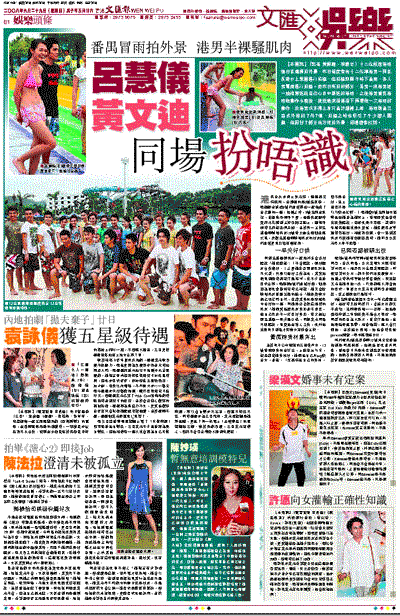 問到呂慧儀跟男友一起拍外景會否好尷尬?她回應說:「不會尷尬,跟好朋友合作幾好。」之後她也否認彼此刻意不交談,只是以做好工作為先,其實他倆見到面時都有打過招呼,也不介意被要求合照,而她跟8號何君誠好傾,則是因為彼此當模特兒時已相識。她又會給緋聞男友甚麼出鏡的貼士?她感覺對方都已淡定和自然,也讚其身材是眾港男中最好的一個。問她是否喜歡這類型的男友?她倒笑指選男友身形並不重要,做自己男友不一定要好身形。黃文迪似跟呂慧儀一早夾過口供,同樣表示同場不感尷尬,畢竟他在專心工作,此外他也是昨日到場才知對方有份當主持。