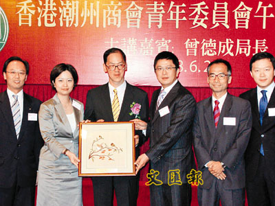 【本報訊】(記者 潘曉平) 潮州商會青年委員會日前假港麗酒店舉行午餐演講會,邀請上任滿一年的民政事務局局長曾德成主講「2008年及未來」。