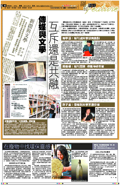 如今,從傳媒視野看來,文學是票房毒藥,但反過來看,文學視野中的傳媒,其實有甚麼價值?兩者今天仍有甚麼接軌之處?這是最近香港中文大學中文系舉辦的「文學史視野中的『大眾傳媒』研討會」其中一個課題。