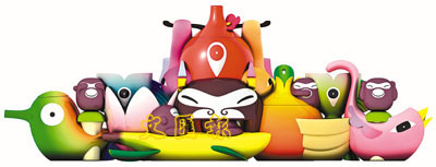 除了魚兒,設計師又以活潑的獼猴,配合其至愛──香蕉,組成一個盛糖、奶的最佳組合。性情率真活潑的獼猴,張開大口,就化身成盛糖容器,削成一半的香蕉,用來盛載雪白的牛奶,十分切合其黃皮白心的特點。
