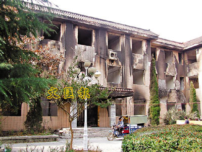 ■被焚燒一盡的甕安縣委大樓。 本報貴州傳真