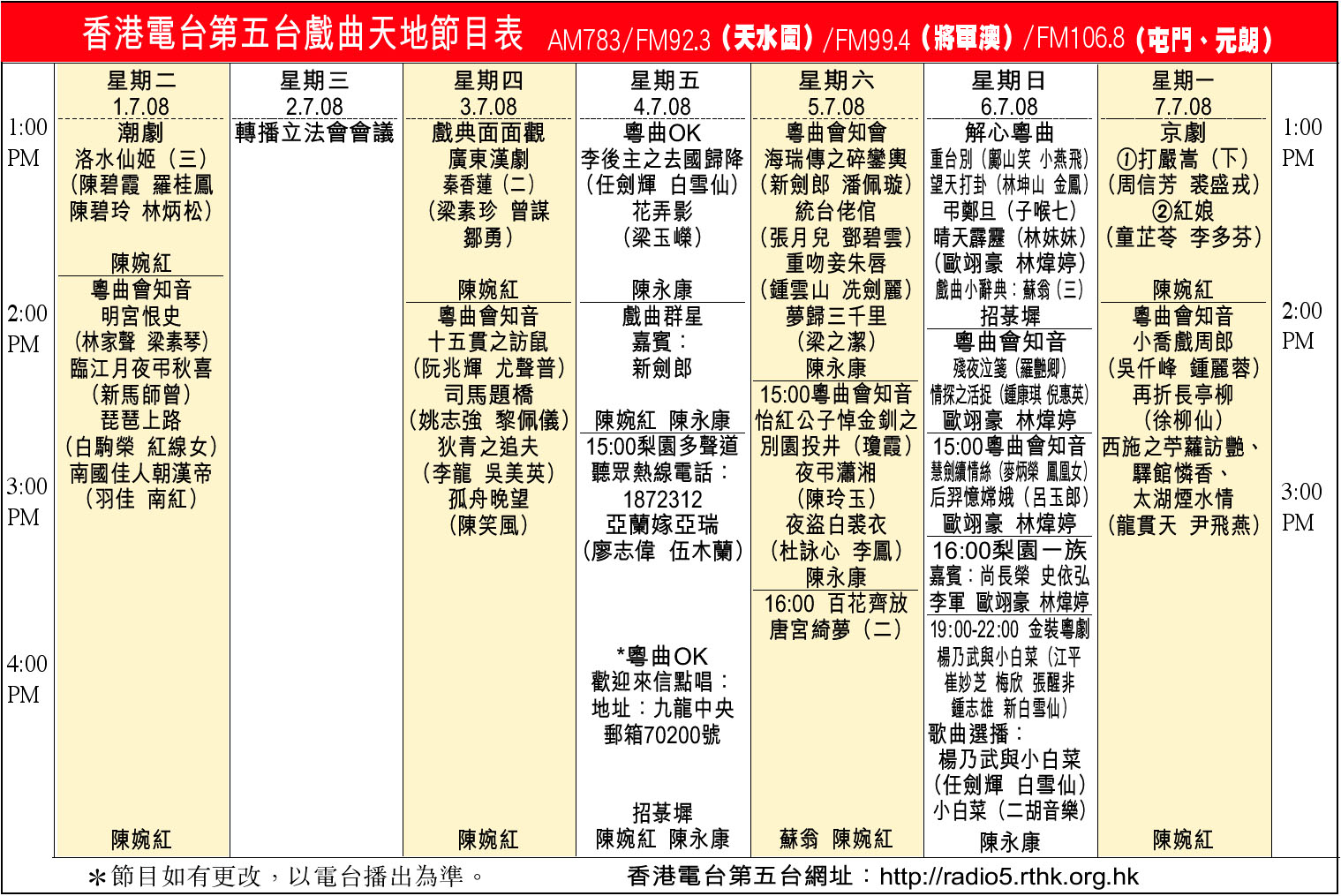 香港電台第五台戲曲天地節目表