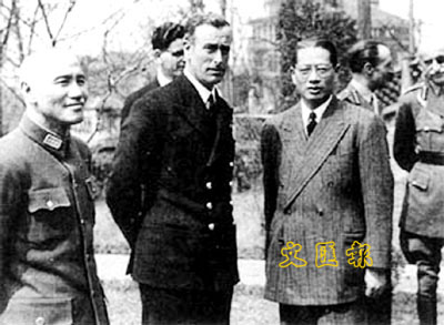■1943年10月,宋子文、蔣介石在重慶與來訪的英國東南亞戰區統帥蒙巴頓合影。 資料圖片